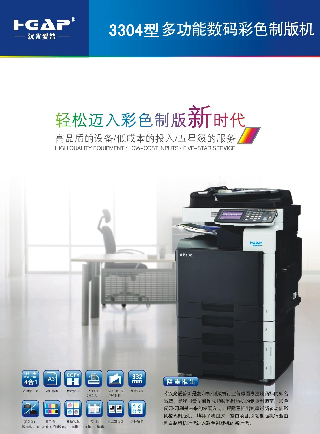 《汉光爱普》是复印机/制版机行业首家国家注册商标的知名品牌,是我国早期研制成功数码制版机的专业制造商。彩色复印/印刷是未来的发展方向,现隆重推出独家最新多功能彩色数码制版机,填补了我国这一空白项目,引领制版机行业由黑白制版时代进入彩色制版的新时代。
